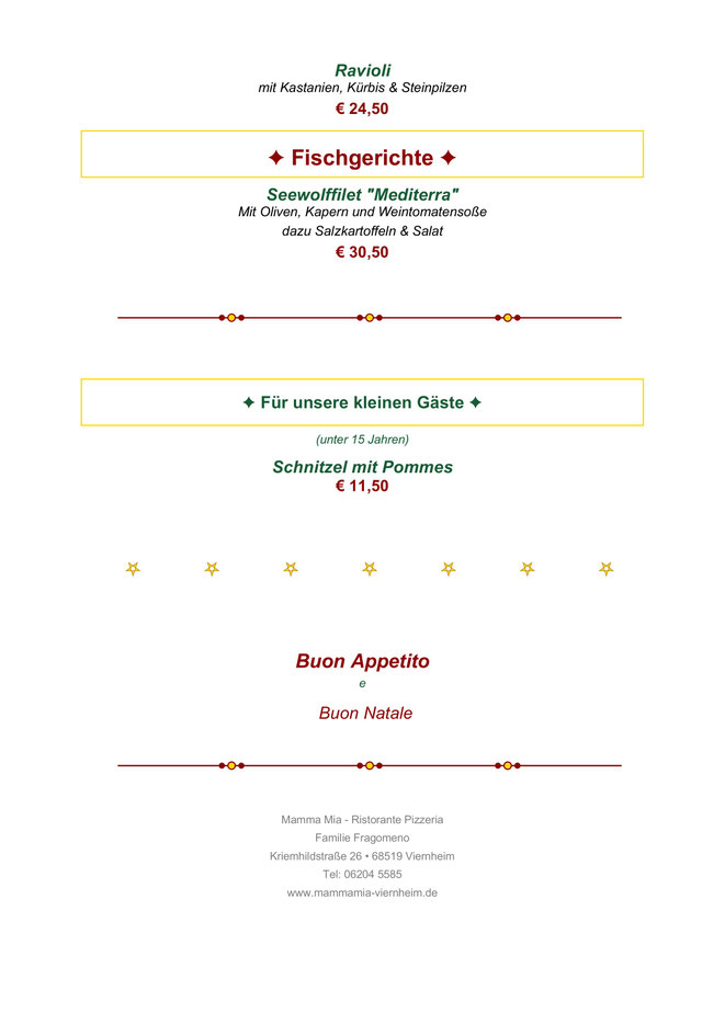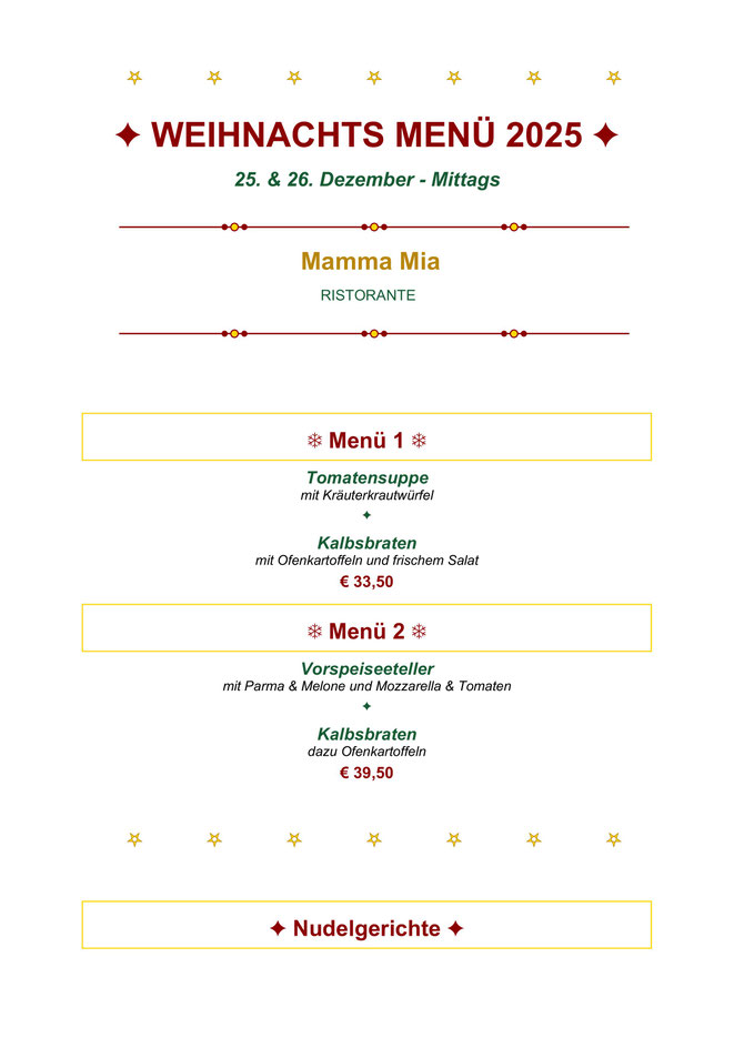 An den Feiertagen sind wir am 25. und 26. Dezember mittags geöffnet.